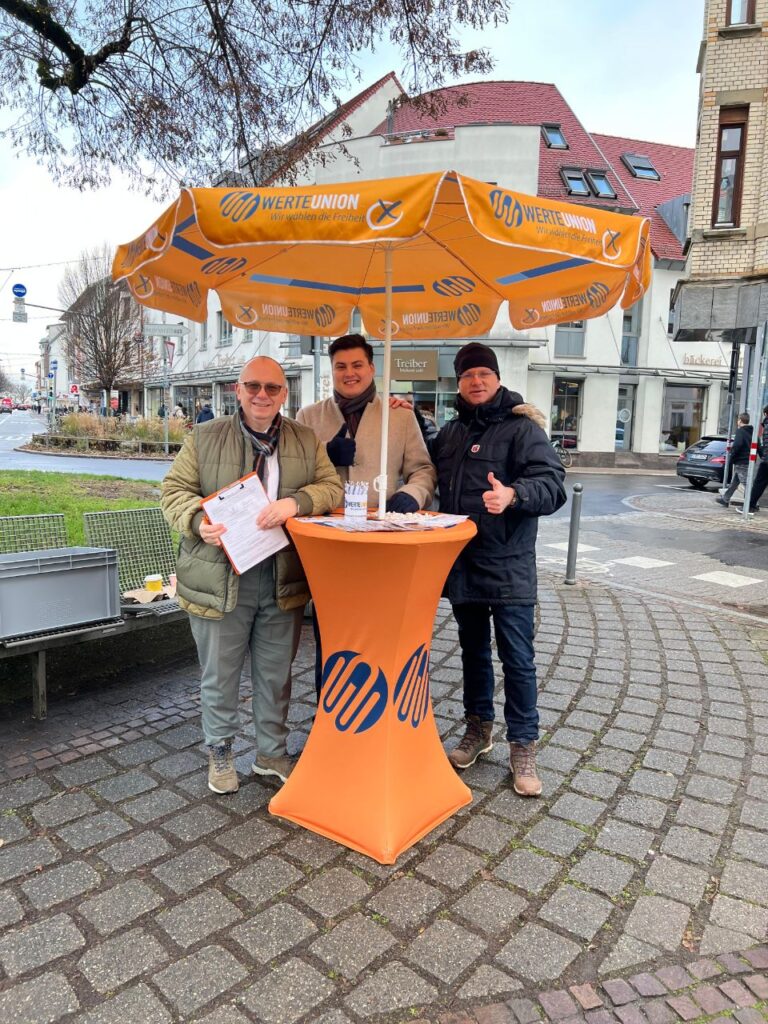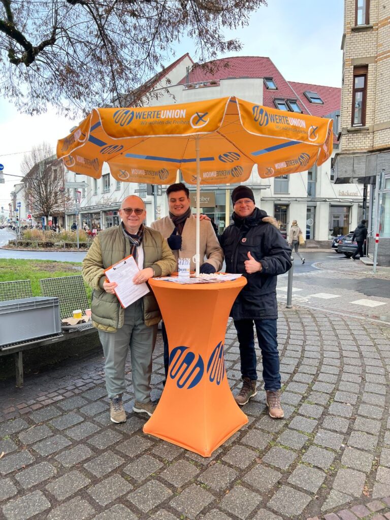 Die WerteUnion kommt nicht zur Ruhe. Zwischen Waldau und Fernsehturm stand am Samstag, den 29. November der hochkarätig besetzte Infostand der WerteUnion in Stuttgart-Degerloch. Dr. Dirk Spaniel, der Stadtrat Thomas Rosspacher und Lukas Dieckmann-Arguelles hielten die Fahne für unsere Partei hoch. Vielen Dank für das Engagement!